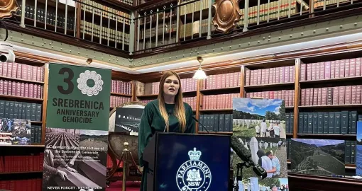 Charishma Kaliyanda, članica Parlamenta NSW-a i predstavnica izborne jedinice Liverpool, podsjetila je na obavezu svih demokratskih društava da se zločini poput onoga u Srebrenici nikada ne zaborave niti ponove.