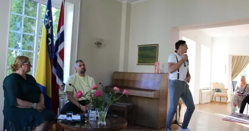 Još jednom je prostor Ambasade Bosne i Hercegovine u Oslu bilo mjesto susretanja sa važnim ličnostima. Ovog puta je to bilo druženje, bolje rečeno svojevrsni otvoreni intervju sa Leom Ajkićem, renomiranim TV voditeljem, rođenim Mostarcem, koji se etablirao kao jedno od neprepoznatljivijih TV lica u Norveškoj.