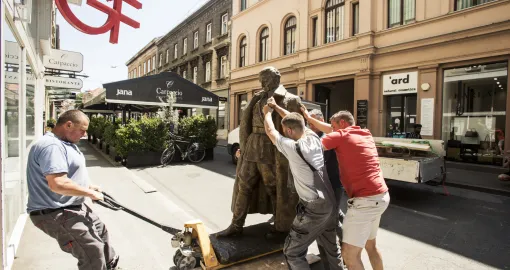 Maršala Tita se godinama bezuspješno pokušavalo deložirati s Trga u samom središtu grada, s neobaroknim zdanjem Hrvatskog narodnog kazališta. Situacija se promijenila nakon rezultata lokalnih izbora 2017. U novom sazivu Skupštine grada tada nitko nije dobio većinu, pa je najdugovječniji zagrebački gradonačelnik u međuvremenu preminuli Milan Bandić ustuknuo pred ultimatumom strančice Neovisni za Hrvatsku (bivši ministar kulture Zlatko Hasanbegović i ekipa) i za nekoliko njenih glasova podrške pristao na promjenu naziva Trga.