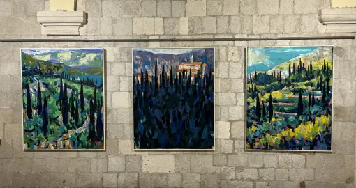 - Na ovoj izložbi izloženo je 20 pejzaža velikog formata veličine od 150 do 250 cm, tako da su zidovi Sponze nekako razigrani. Izložba od prije 25 godina je bila moja prva izložba, formati su bili različiti, tada nisam uopće razmišljala o prostoru, nego samo o slikama. A sad sam se toliko veselila toj Sponzi da sam se prilagodila njezinim zidovima, onda se stvorila lijepa muzika, dinamika unutar tog prostora koji je prekrasan, koji nije galerija, nije ni palača ili je sve to zajedno.