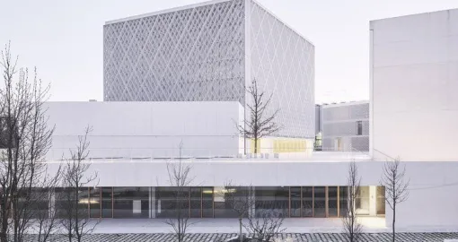 Taj je “grad u malom”, kako su ga definirali njegovi autori, definiran bjelinom i uzdignutom osnovom, cjelina koja je istovremeno i vizualno kompaktna, ali i segmentirana u blokove različitih funkcija, raspoređene oko trga – harema i okružene kaskadnom baštom, naoko jednostavno dizajniran. Romboidna željezno-staklena mreža koja čini vizualnu osnovu fasade i unutrašnjosti, suptilno podsjeća na tradicionalne forme oblikovanja i provlači se i u vizualnom identitetu Monografije: u teksturi korica i u šari koja razdvaja tematske i fotografske cjeline.