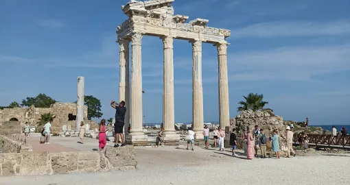 Put obale vodi vas u Side, mjesto bogate historije i prekrasnih plaža. Mostar, Trebinje i Makarska kao da su se sjedinili u jedno. Miris mora opija. A restoran Karma idealan je za pauzu za obrok dok zvuci talasa sviraju najljepšu muziku. Na rubnom dijelu obale ostaci Apolonovog i Atininog hrama prkose vremenu, a ljepota izvire iz svakog kamena. Stotinjak kilometara dalje, vjekovima ponosno stoji antički grad Perge. Ostaci antičkih bazilika, restorana, pijaca, a čak i vodovodnih cijevi, impozantne su arheološke iskopine. A za obilazak ovog drevnog grada potrebno je odvojiti i nekoliko sati. Nedaleko od Pergea nalazi se veličanstveni Aspendos amfiteatar, najbolje sačuvan antički amfiteatar. Promjera gotovo stotinu metara, mogao je primiti i do 7.000 posjetitelja. Šapat sa središnje tačke moguće je čuti i na vrhu stamenite građevine.