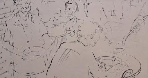 Marijan Detoni, također akademik, redoviti član Jugoslavenske akademije znanosti i umjetnosti JAZU (danas HAZU), u vrijeme trajanja Zemlje 24-godišnjak, na izložbi je zastupljen poznatim crtežom “Prehrana”, istoimena slika iz 1935. čuva se u Nacionalnom muzeju moderne umjetnosti u Zagrebu. Stvarnost siromaštva i gladi je prizor koji dočarava ovo antologijsko djelo, na kojem vidite dobro odjevene gradske ljude koji čekaju na donirani obrok u javnoj kuhinji. “Vrlo aktualno”, konstatira sugovornik Oslobođenja.