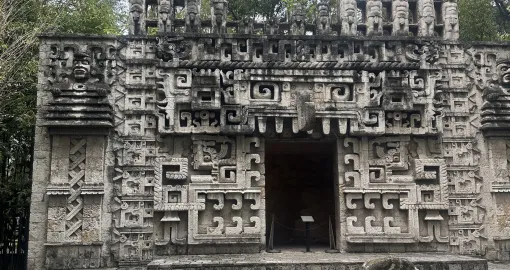 Naime, ako uđete u impresivnu zgradu Muzeja, u čijem dvorištu kao da je sletio svemirski brod, a što je zapravo potporni stub, zatim prođete kroz dvoranu gdje je izložen Sunčev kamen, tj. Astečki kalendar (iz cca 1502. g), zatim dalje kroz rekonstrukciju Pakalovog groba u izložbenoj sobi Maja, pored brojnih vitrina sa skulpturama fantastične preciznosti od najcrnjeg obsidijana, doći ćete do staklenih vrata na stražnjoj strani muzeja koja vode u vrt, u kojem se također lako možete izgubiti. Ovaj mali lavirint sastavljen od vegetacije i astečkih skulptura ima upravo ovo za cilj, da zaboravite da ste usred najvećeg i najluđeg grada u kojem ste bili.