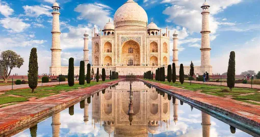 Sedamnaest godina gradili su spomenik ljubavi najvještiji majstori Azije, a njima je pomagalo preko 20.000 fizičkih i pomoćnih radnika. Tako je na obalama mirne Yamune, između svetih lotosovih cvjetova, nikao najljepši cvijet arhitekture – veličanstveni Taj Mahal, jedno od sedam graditeljskih čuda Starog svijeta.