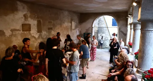 - Rukavina je uspio udahnuti umjetnički duh Grožnjanu. Pokrenut je proces obnove grada. Onda su doselili umjetnici iz cijele bivše države i uselili u te kuće. Najprije je bila ideja da Grožnjan bude samo kao neka lijepa kolonija, ali mnogi su ostali. I te kuće su uređene, nisu betonjare nego starinske. Autori koji gostuju s izložbom ne dobiju honorar, ali znaju ostaviti rad, imaju čuvanje, katalog, i evo, tako, voli se taj Grožnjan!, kaže gosp. Eugen.