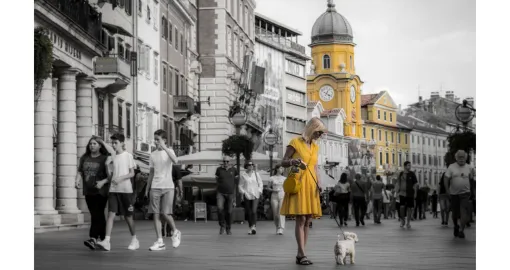 - Najviše lajkova imao je Jurica Žumberac iz Rijeke, Snježana Požar je iz Zagreba. Fotoklub Rijeka ima članove iz Hrvatske, Njemačke, Bosne i Hercegovine, Slovenije, Srbije... imamo članove u pola Europe. I fotografija Jurice Žumberca “U šetnji” je isto perfektna. Prikazuje glavnu riječku šetnicu Korzo, dio je u boji, ostalo je crno-bijelo. On je napravio finu manipulaciju u fotošopu, ali nije u tome pretjerao i napravio nešto neprirodno, nego je naprotiv naglasio ono što je jako važno u urbanom pejzažu. Ono što je interesantno, druga fotografija po broju lajkova je portret Snježane Požar, a po broju glasova u galeriji drugi je Jurica Žumberac. Odlično su odreagirali posjetitelji galerije i ovi što su lajkali, to je moja procjena. Tu nije bilo onoga prijateljskog nagovaranja u stilu “glasaj za mene”, doista su odabrali dvije odlične fotografije, ima ih još sjajnih, ali ove su zaista top.