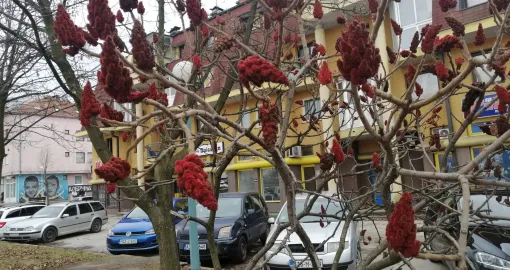 Idemo li u parkove, još više ćemo naći zimskih ljepotica. U mojoj blizini, pored Olimpijskog muzeja, na bijelim gornjim granama još zimuju poneki listovi, a tu su i viseći okrugli plodovi koji su zimski ukras platana. Kora platana je opet priča za sebe. Pogledajte je. Prava slika raznih nijansi boja. Kiseli ruj, malo ukrasno drvo, tek zablista zimi kada je pun tamnocrvenih klasastih plodova sa sjemenkama. Na sunčanim dijelovima parkova i vrtova zimi su grmovi kotoneastera i vatrenog grma puni plodova, koji su i ljepši i duže traju od cvatnje tih grmova. Ostaju na grančicama dugo u zimu, pa i u proljeće, ukoliko ih ranije ne pojedu ptice.