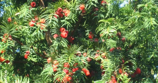 Tisu i ilex na sunčanom položaju zimi krase crveni plodovi koji se ističu i ne mogu biti nezapaženi između zimzelenih tamnozelenih iglica tise i tamnozelenih sjajnih bodljikavih listova božikovine.