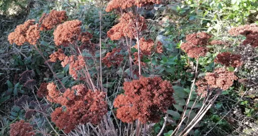 Debela koka – mesnatolisni sedum (Sedum spectabile) ima tamnocrveno smeđe cvatove, koji sa ostalim suhim cvatovima, poput svih vrsta hortenzija čiji cvatovi u jesen poprimaju specifičnu svijetlosmeđu boju, traju u toku zime i jednako su lijepi i dobrodošli u vrtu, parku, kao i u suhim zimskim cvjetnim aranžmanima.