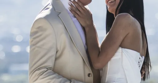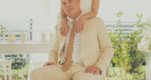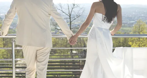 Bešo je nosila bijelu vjenčanicu bez naramenica, s dugim šlepom, dok se Tegeltija odlučio za krem odijelo koje je kombinovao sa smeđim detaljima i zlatnom kravatom.