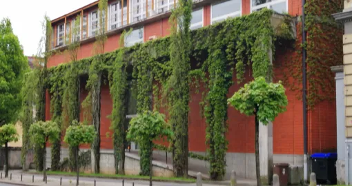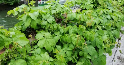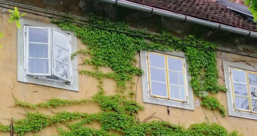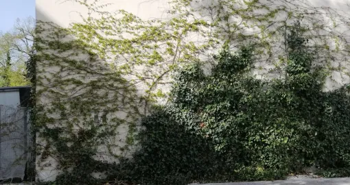 Zimzeleni bršljan i trolisna lozica prekrivaju veliku površinu zida u urbanoj sredini