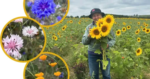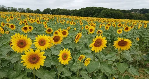 Posjetila sam farmu koja se na velikim površinama bavi uzgojem suncokreta i livadskog cvijeća u turističke svrhe. Suncokret je zasijan na 2 hektara, a livadsko cvijeće na nešto više od jednog hektara. Festival obično traje tri sedmice i to u ovom dijelu zemlje u augustu, kada je suncokret na vrhuncu cvatnje, a i dobar dio livadskog cvijeća, tako da se zaista može uživati u raskošnim cvjetnim prizorima. To je ovih dana prava turistička atrakcija koju posjećuju ljudi iz okoline, pa i iz cijele Velike Britanije.