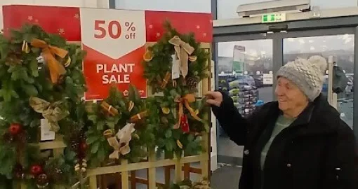 U vrtnom centru se nudi dosta prazničnih dekoracija i poklona. Zanimali su me posebno pokloni ekološkog porijekla. Iznenađena sam da su oni skuplji od klasičnih ukrasnih. Tako vrećica borovih šišarika košta 7,50 £, a tri male grančice imele 4,50 £. Voljela bih da te materijale, kojih imam dosta u mome vrtu, mogu kod nas prodavati kao prazničnu dekoraciju.