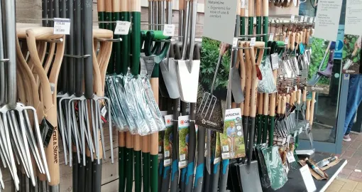 Za rad u vrtu trebamo imati osnovni alat, materijal i opremu. To sve nude vrtni centri, kojih i kod nas ima sve više. Šta nabaviti? Gumene čizme su u vrtu neophodne, jer mnogo radova, pogotovo po kišnom vremenu, bez njih nije moguće izvesti, vrtlarske rukavice, makaze za orezivanje, ašov i lopata, motike i motičice, grablje, kanta za skupljanje otpadaka, kante za zalijevanje, burad za skupljanje kišnice i još mnogo toga što možemo naći u vrtnim centrima. U kući imamo svi neke još dobre stare tene, koje dobro dođu za rad u vrtu kada je vrijeme sunčano, a tlo nije mokro.
