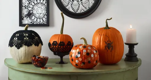 Sezonske dekoracije poput svijeća, lampica i bundeva stvaraju atmosferu topline. Umjesto skupih ukrasa, koristite prirodne elemente: šljive, suho lišće, orašaste plodove ili grančice.