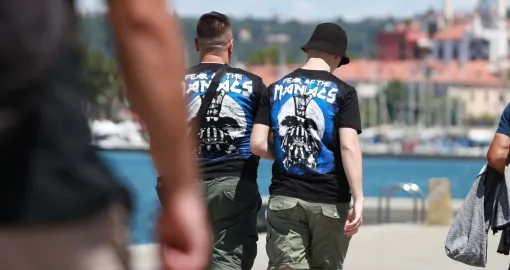 Ulice i obala ovog slovenskog grada su već "obojeni" u plavo. Navijači uveliko pristižu i ponosno ističu rekvizite ekipe sa Grbavice.