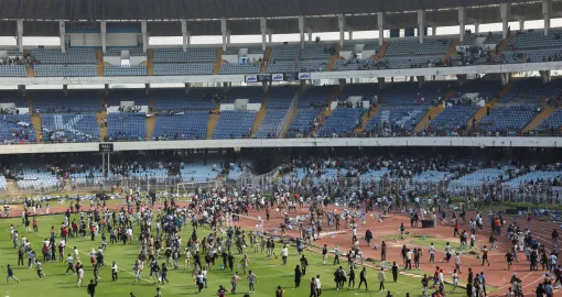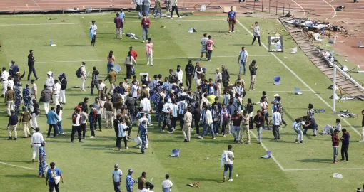 Kada su navijači na tribinama shvatili da ni od počasnog kruga neće biti ništa, počeli su bacati boce, kidati stolice sa tribina i ubacivati sve što im se našlo pod rukom, a onda su krenuli i sa uništavanjem reklamnih bilborda. Nastao je stampedo, a informacije kažu da ima i povrijeđenih.