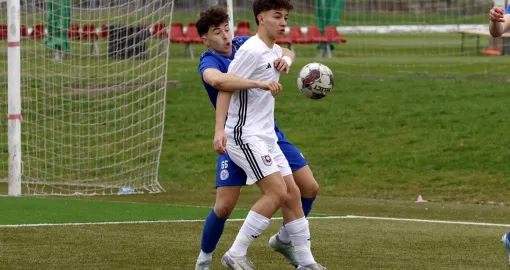 Za razliku od pionira, u kadetskom derbiju smo vidjeli dosta tvrđu utakmicu sa puno manje prilika. Prvo poluvrijeme nije donijelo velika uzbuđenja, a najboljaprilika je viđena sredinom prvog dijela, kada je Anes Hadžimehmedović iz Sarajeva izašao sam ispred golmana, ali je njegov šut odbranio golman gostiju.