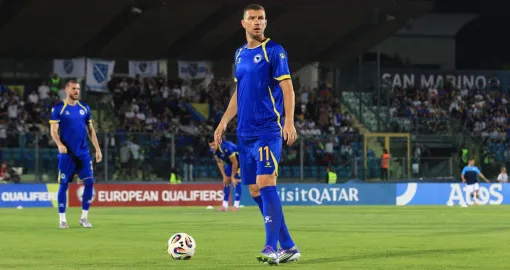 Početkom drugog poluvremena, tačnije u 49. minuti, Džeko je imao veliku šansu. Šutirao je glavom nakon kornera, ali je golman San Marina odbranio njegov udarac.