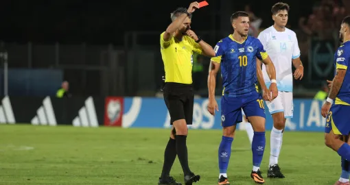 Onda je u 16. minuti selekcija San Marina ostala sa igračem manje na terenu nakon što je Alessandro Golinucci, kao posljednji igrač, faulirao Kerima Alajbegovića i zaradio direktan crveni karton.