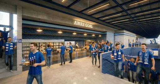 Projekt nove fasade osmišljen je kao savremena kombinacija valovitih aluminijskih obloga, uz integraciju LED ekrana na bočnim stranama objekta te na parapetu iznad poslovnih prostora u prizemlju. Pored vanjskog izgleda, integralni dio projekta obuhvata i renoviranje ulaza te mezanina sjeverne tribine.
