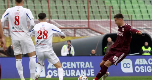 Susret na Koševu, koji se igrao pred praznim tribinama, počeo je relativno mirno i bez većih uzbuđenja, a onda je u desetoj minuti Anel Hebibović šutirao iz odlične pozicije, ali nije uspio da savlada Rogića.
