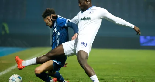 Plavi uzvraćaju deset minuta kasnije odličnom šansom. Joao Erick je oduzeo loptu, dodao do Davora Rakića, ovaj odložio povratnu za Aleksandra Boljevića, no njegov šut iz odlične pozicije odlično brani Elvir Trako.