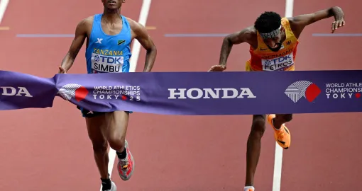 Obojica su u cilj ušli sa vremenom dva sata, devet minuta i 48 sekundi, a Simbu je prošao nekoliko stotinki brže.