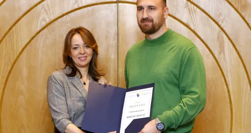 Osim državne nagrade za sport Ministarstvo civilnih poslova BiH danas je dodijelilo i priznanja za 16 zaslužnih i 32 vrhunskih sportista međunarodnog karaktera, koji su dobili jednokratnu novčanu pomoć u iznosu od 1.600 do 3.000 KM, za šta je izdvojeno ukupno 100.000 KM.