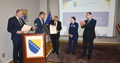 U Ambasadi Bosne i Hercegovine u Washingtonu je 27. februara 2025. godine svečano obilježena 33. godišnjica nezavisnosti Bosne i Hercegovine. Prijemu je prisustvovao veliki broj zvanica, među kojima predstavnici State Departmenta SAD-a, Kongresa (Zastupničkog doma i Senata), Bijele kuće, Vijeća za nacionalnu sigurnost, Svjetske banke, Međunarodnog monetarnog fonda, visoka delegacija američke savezne države Maryland s kojom Bosna i Hercegovina ima 22 godine državnog partnerstva, te brojni predstavnici diplomatskog kora, kao i bosanskohercegovačke dijaspore koja živi širom SAD-a.