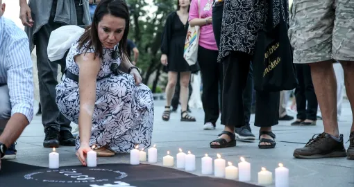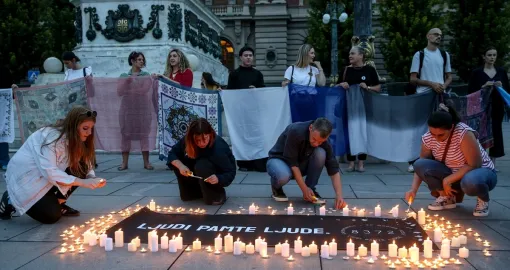 Paljenje svijeća na Trgu Republike u glavnom gradu Srbije jedna je u nizu manifestacija u organizaciji koalicije "Ljudi pamte ljude" pod nazivom "Srebrenica - 30 godina posle" koje se održavaju u nekoliko gradova Srbije od početka juna do sredine jula.