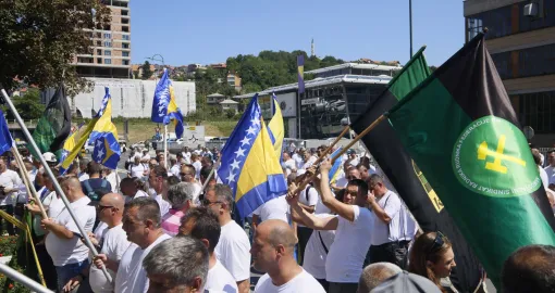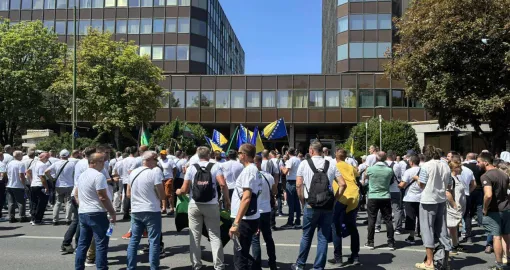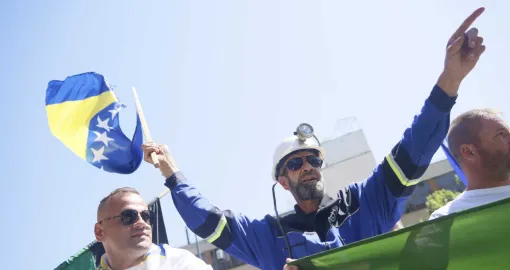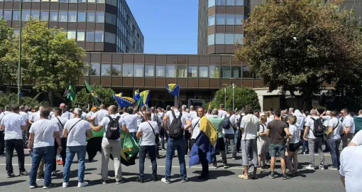 Ispred zgrade Vlade Federacije Bosne i Hercegovine počelo je okupljanje rudara, uz uzvike “Lopovi” i intoniranje državne himne. Protest je organizovan zbog neisplaćenih plaća za maj i juni, kao i zbog neispunjavanja obaveza prema radnicima koji su ove godine stekli pravo na penziju.
