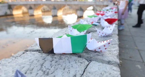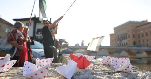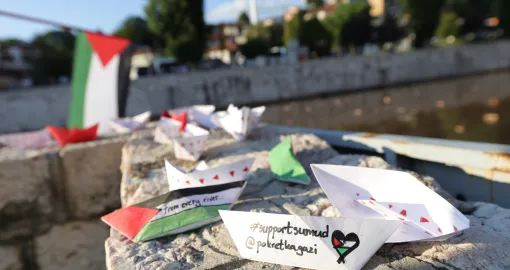 U organizaciji neformalne grupe građana BiH pod nazivom “Pokret za Gazu“ u Sarajevu je u četvrtak upriličeno simbolično puštanje papirnih brodića u rijeku Miljacku u znak solidarnosti sa humanitarnim flotilama koje namjeravaju ploviti u Pojas Gaze kako bi probile smrtonosnu izraelsku opsadu te enklave.