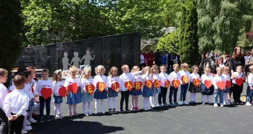Cvijeće su položile porodice ubijenih, preživjele žrtve rata, boračka udruženja i predstavnici vlasti Goražda i Bosansko-podrinjskog kantona. Na kraju, u znak sjećanja, u nebo je pušten 151 bijeli balon, za svako dijete koje nije dobilo priliku da odraste.