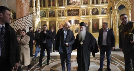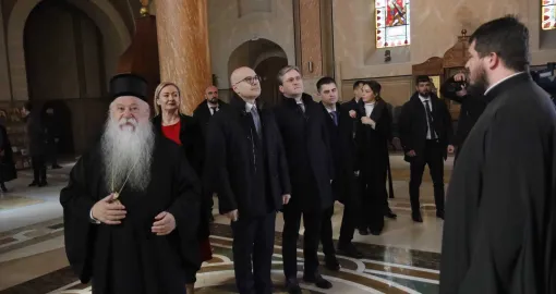 Prethodno je mitropolit Hrizostom njega i ostatak delegacije iz Srbije dočekao u sjedištu Mitropolije. Nakon toga uputili su se u Sabornu crkvu koja se, također, nalazi u centru grada.