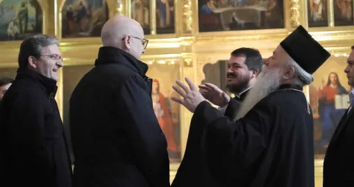 Miloš Vučević, premijer Srbije u ostavci, boravio je u kratkoj šetnji glavnim gradom Bosne i Hercegovine sa mitropolitom Hrizostomom.