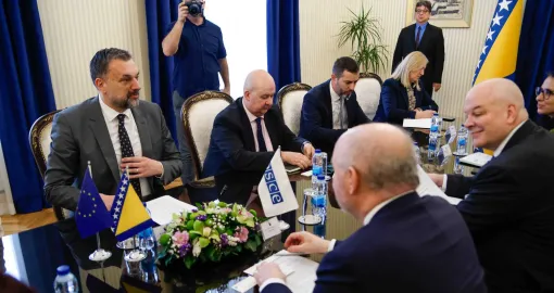 - OSCE još jednom potvrđuje svoju punu podršku Ustavu BiH. Puno poštovanje vladavine prava i odgovorno rukovodstvo su ključni za kreiranje mirne i prosperitetne budućnosti za sve u Bosni i Hercegovini. Nedavno usvajanje niza zakona i mjera u NSRS-u kojima se zabranjuje rad pravosudnih i sigurnosnih institucija BiH na teritoriji RS-a i njihovo stupanje na snagu predstavljaju kršenje ustavnog poretka BiH, kao i prijetnju stabilnosti i jedinstvu države. Pokušaj formiranja paralelnih struktura na entitetskom nivou podriva stabilnost u Bosni i Hercegovini i regionu.