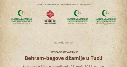 Smještena u samom srcu Tuzle, sa novom kupolom i munarom, jedan od najznačajnijih spomenika islamske arhitekture u Bosni i Hercegovini Šarena džamija, svečano će biti otvorena 5. maja u okviru manifestacije “Dani vakufa 2025”.