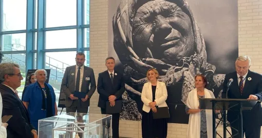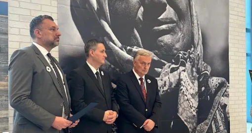 Danas odajemo počast hrabrosti preživjelih, a posebno ženama genocida u Srebrenici prije 30 godina, onima koje su pretrpjele nezamisliv gubitak, a i dalje stoje kao simboli dostojanstva, nade i nepokolebljive ljubavi. Također smo duboko zahvalni Memorijalnom centru Srebrenica i svima koji su doprinijeli kreiranju ove važne izložbe, osiguravajući da se ove priče prenesu budućim generacijama.