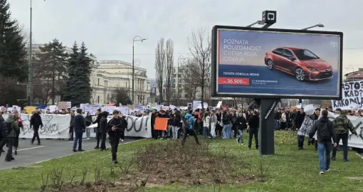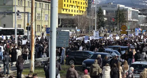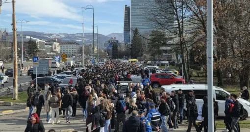 14:55 Protestu u Sarajevu se bliži kraj, okupljena omladina vraća se ka Zemaljskom muzeju.