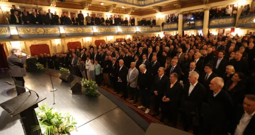 Sarajevo, BiH - 13. oktobar 2025: U Narodnom pozorištu Sarajevo danas je održana komemoracija u čast legendarnog bh. pjevača Halida Bešlića, koji je preminuo 7. oktobra 2025. godine u 72. godini/Anadolija/