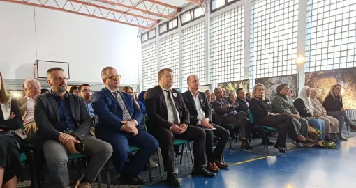 Prisutnima se obratio direkor škole Edin Đedović, a program se nastavio obraćanjem prisutnih: pomoćnik federalne ministrice obrazovanja i nauke Marko Antonio Brkić, direktor Arhiva FBiH Hajrudin Ćuprija, asistentica za međunarodnu saradnju pri Memorijalnom centru Mirela Osmanović, srebrenička majka Ramiza Gurdić.