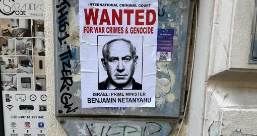 U centru Sarajeva jutros je na nekoliko lokacija osvanula "potjernica" za izraelskim premijerom Benjaminom Netanyahuom.