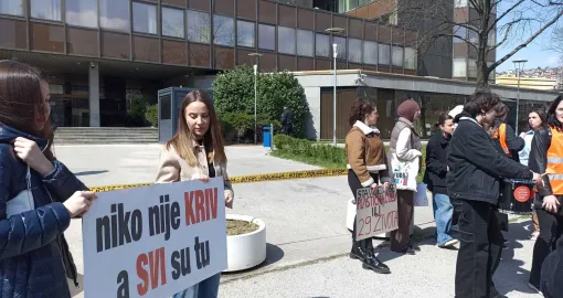 Neformalna grupa studenata pod nazivom "Hoćel' ta promjena" okupila se ispred zgrade Vlade FBiH. Studenti protestuju zbog izostanka reakcije vlasti Federacije BiH nakon katastrofalnih poplava i klizišta u oktobru prošle godine.