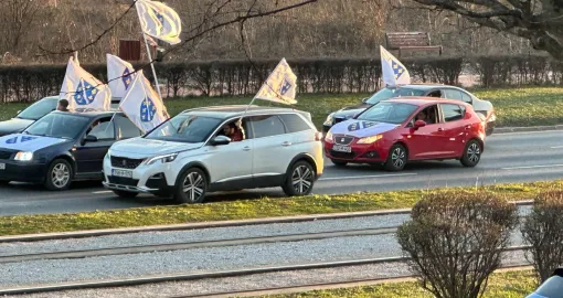 Sa spomenute lokacije je formirana duga kolona vozila koja se kretala kroz grad sa povremenim zaustavljanjem.