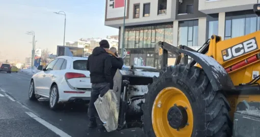 Kako javlja naša novinarka sa mjesta događaja, bager je, pod još nerazjašnjenim okolnostima, udario u zadnji dio automobila Audi.