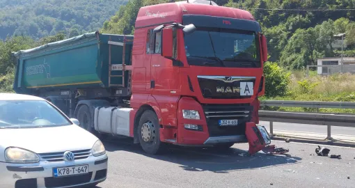 Kako javlja fotoreporter Oslobođenja sa mjesta događaja, u sudaru su učestvovali kamion i automobil.