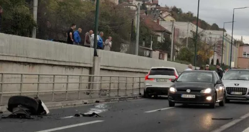(FOTO) Nesreća u Sarajevu: Žestok sudar dva vozila, jednom otpao točak