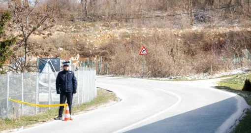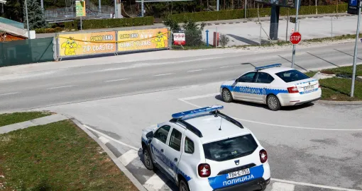 Posjetili smo mjesto događaja, gdje smo zatekli policija vozila i policijske službenike. Žuta traka je postavljena na ogradi objekta.